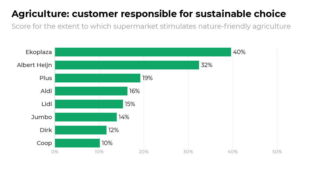 In their shop, supermarkets delegate social responsibility for sustainable agriculture mainly to their customers. This despite the agreement that supermarkets would make an effort to give biodiversity a more prominent place in their labelling systems, standards and certification they use.