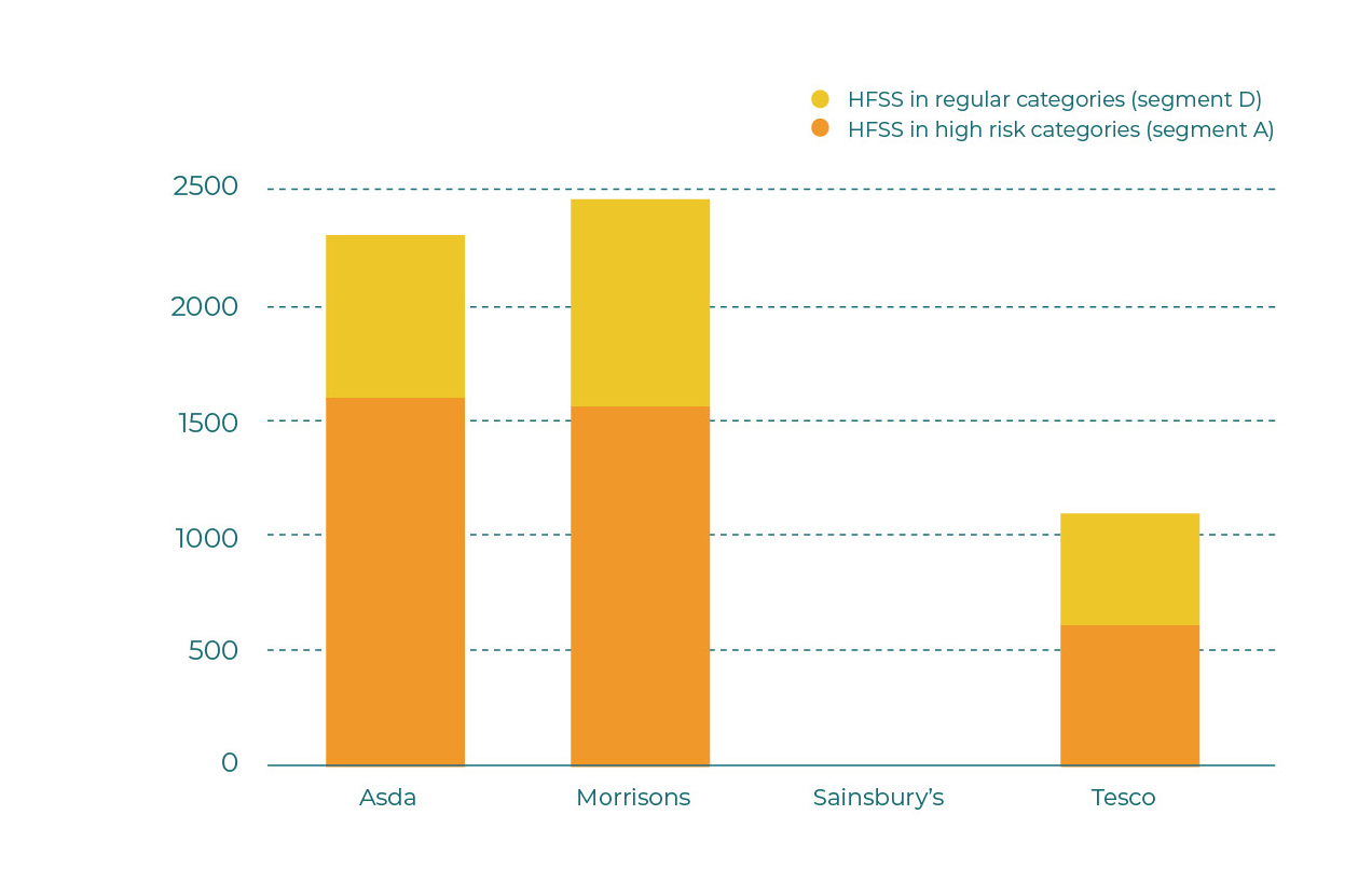 Uit het onderzoek blijkt dat Sainsbury's als enige supermarkt goed is voorbereid op de nieuwe beperking. De supermarkt stopte al eerder met multi-buy-promoties van alle HFSS-producten. De andere grote supermarkten leunen daarentegen nog steeds sterk op promoties die onder de nieuwe wet verboden zullen worden. Bij Asda en Morrisons liepen per week gemiddeld meer dan 300 van deze promoties. Tesco was iets gematigder met gemiddeld 120 multi-buy-promoties per week.