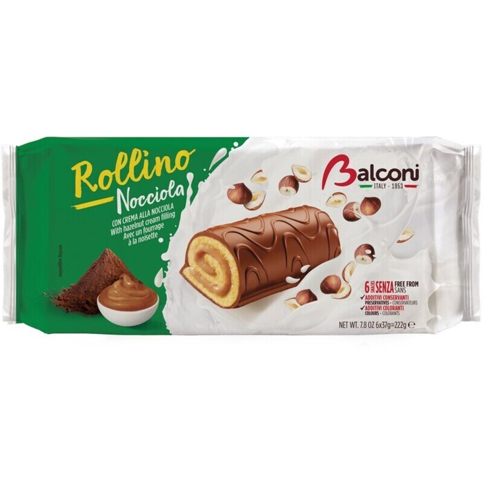 Balconi Rollino Nocciola with Hazelnut Cream Filling 6 x 37 g is niet geschikt als onderdeel van je dagelijkse voeding.